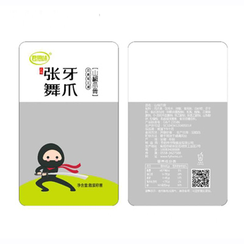君思味吃我一爪酱香味凤爪100g营养丰富,口感纯正,产品覆盖面积大,终端接受率高,市场前景广,价格十分实惠,具有极高的竞争优势,恰好迎合了大部分消费者的消费心理。渠道的广泛,自然带来了巨额利润,赚钱的脚步根本停不下来,相信这是每一位经销商想收获到的!潮流的包装、精准的定位,火爆的市场,诚邀经销商一起共创财富传奇!