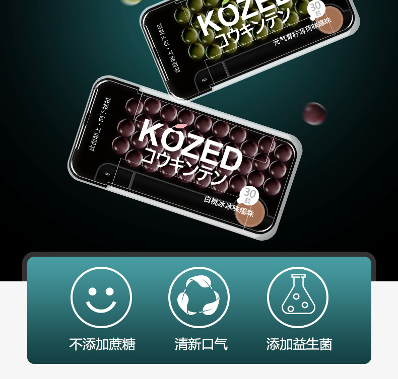 爆珠薄荷糖厂家批发 绿豆味白桃味 清新口气网红男女接吻神器防困提神好物