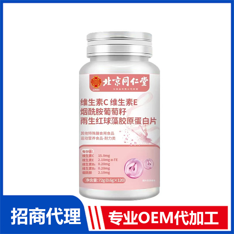北京同仁堂维生素C维生素E烟酰胺葡萄籽雨生红球藻胶原蛋白片OEM代加工 特殊膳食片剂贴牌定制源头工厂