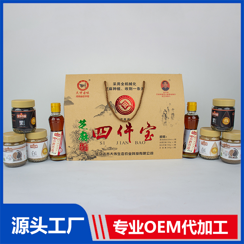 芝麻四件宝礼盒一件代发 小磨香油芝麻酱批发支持定制OEM代工
