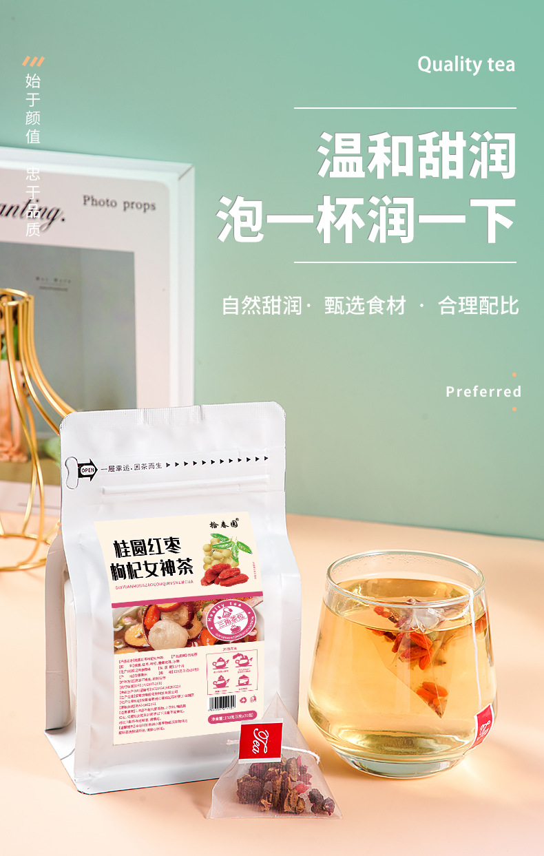 产品名称:桂圆红枣枸杞女神茶OEM/ODM 玫瑰女性滋补养生三角包袋泡茶一站式贴牌代加工
