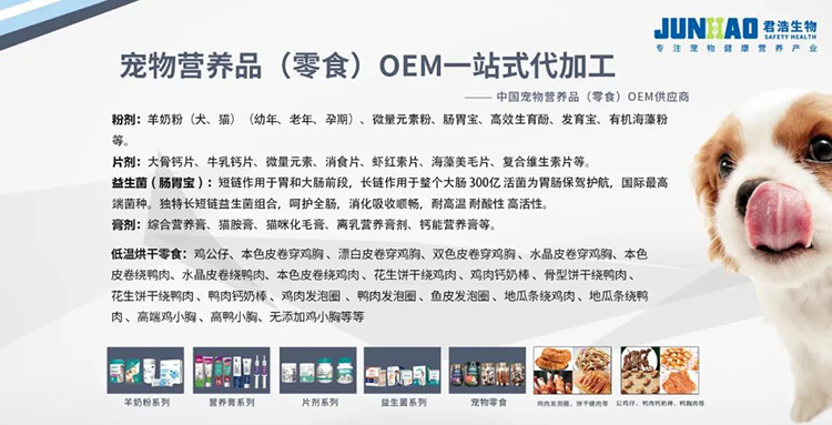 山东君浩生物科技有限公司是一家集生产、研发、销售于一体的综合型宠物营养品现代化企业,企业主要生产经营固态、半固态以及液态宠物营养品、动物营养品,是国内知名度较高的一家大型OEM生产研发加工企业。