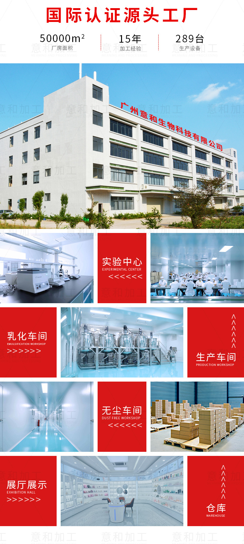广州意和集团秉承“感恩一切”的经营理念,于2018年在广州正式成立,现已发展成一家集研发,加工,培训为一体的大型厂家,旗下拥有三个生产基地;拥有消、妆、械三大证书,员工数360多人, 拥有38条生产线, 拥有高新现代化生产设备;欢迎各界人士来我集团参观指导!咨询OEM加工热线:18818863250聂经理