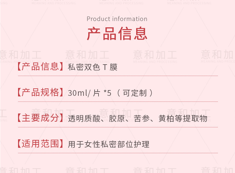 产品名称:私密双色T膜OEM定制加工美容院套盒妇科护理私密双色T膜女性私处粉嫩抑菌紧润