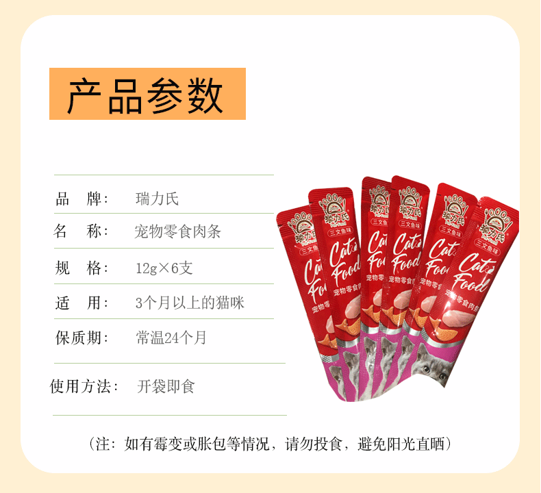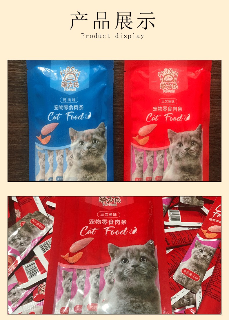 产品名称:瑞力氏猫条厂家批发 宠物成幼猫咪三文鱼鸡肉猫粮