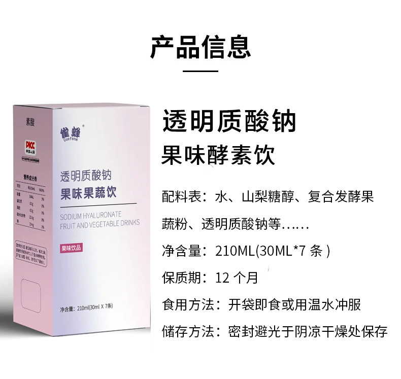 产品名称:果蔬酵素口服液贴牌定制透明质酸钠玻尿酸胶原蛋白果蔬饮品OEM/ODM