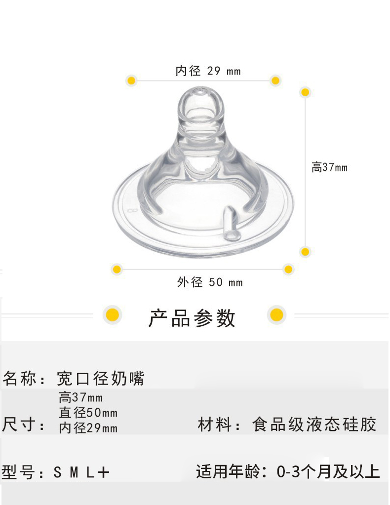 产品名称:食品级宽口径硅胶奶嘴 防胀气耐咬耐嚼奶嘴OEM代工厂家