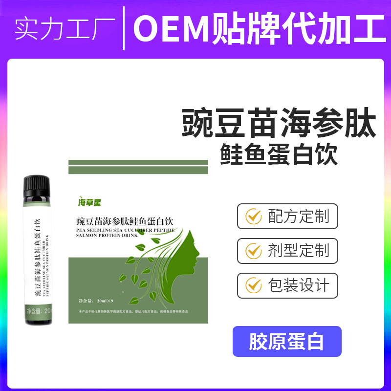 - [2022-12-23]·豌豆苗海参肽鲑鱼蛋白饮液态饮品oem贴牌代加工,量小价格优