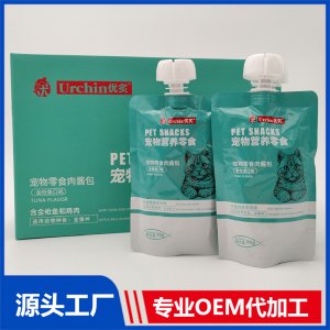 宠物零食肉酱包营养猫条代生产厂家须有先进的生产代加工设备,可进行宠物零食肉酱包营养猫条产品生产代加工服务,有质量为保证,生产周期短的宠物零食肉酱包营养猫条生产厂家往往更受欢迎。代加工宠物零食肉酱包营养猫条宠物零食肉酱包营养猫条,统一配送,优质宠物零食肉酱包营养猫条原料,到到成品服务,全程服务食品溯源,品牌商可个性定制,满足不同需求。