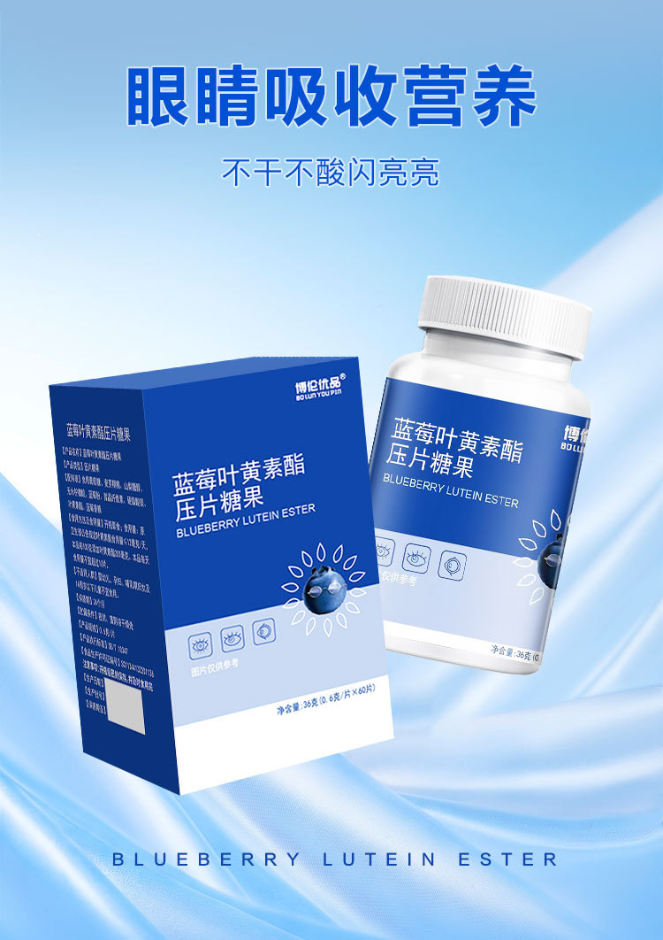 产品名称:博伦优品蓝莓叶黄素酯压片糖果60片一站式贴牌代工