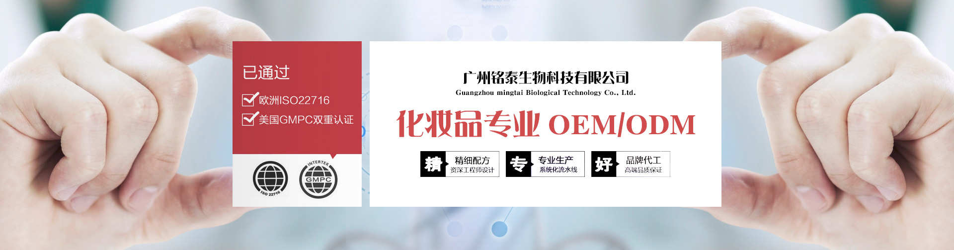 广州铭泰生物科技有限公司是护肤品OEM、眼部护理OEM、手部护理OEM、面部护理OEM、身体护理OEM、彩妆OEM、洗护OEM等产品专业生产加工的公司,拥有完整、科学的质量管理体系。广州铭泰生物科技有限公司的诚信、实力和产品质量获得业界的认可。欢迎各界朋友莅临参观、指导和业务洽谈。