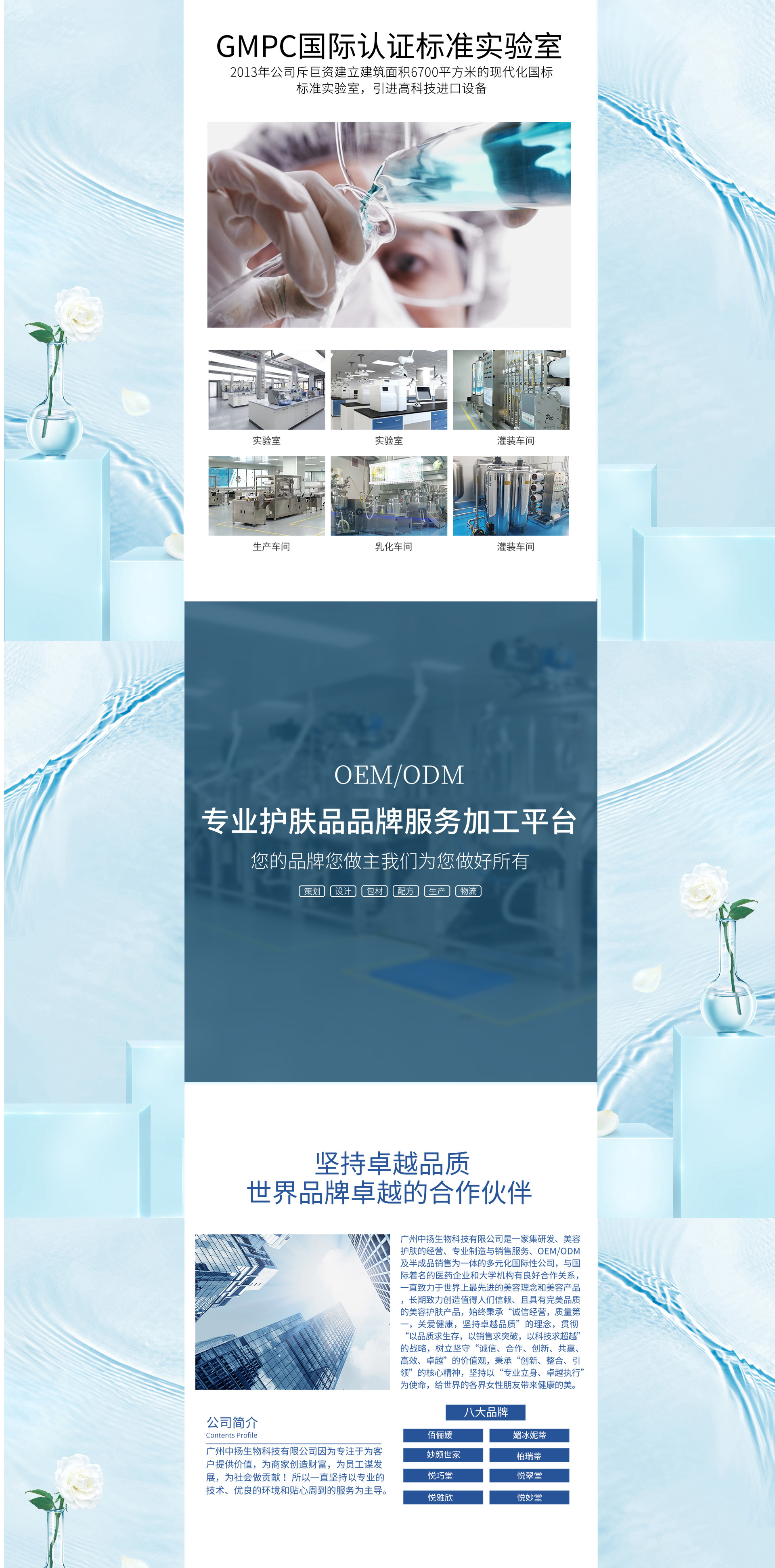 广州中扬生物科技有限公司是一家集生化科技、医药、美容保健品的研发、专业制造与销售、OEM/ODM及半成品销售为一体的多元化国际性公司,与国际著名的医药企业和大学机构有良好合作关系,一直致力于世界上先进的美容理念和美容产品,长期致力创造值得人们信赖、且具有完美品质的美容护肤产品,并始终秉承“坚持卓越品质”的理念,带给世界许许多多的爱美的女性朋友。 中扬企业凭借其创新的技术研发背景和追求卓越品质的信念,并以其出类拔萃的品质、安全性和适用性、以及完美的功效而获得世界各地的消费者高度赞誉与钟爱。 广州中扬生物科技有限公司成立后,在广州设立并建有符合欧美国际GMP标准的工厂“广州皓扬化妆品厂”。 广州中扬生物科技有限公司湖南分公司“湖南九迪生物科技有限公司”,中扬企业以“坚持卓越品质”的产品理念随时欢迎您的莅临合作和指导。