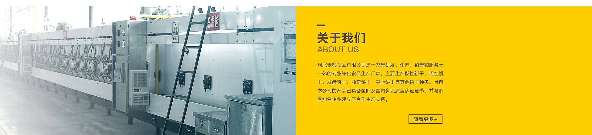 河北麦客食品有限公司成立于2016年,是在旧厂(河北美客食品有限公司)20余年生产加工经验基础上重新组建而成,主要致力于饼干类产品的研发创新,现有酥性饼干、韧性饼干、夹心饼干、苏打饼干、马铃薯薯片五大类等80多个品种。公司积极开拓国内外市场,目前,旗下品牌“麦分享”在国内各省市均有代理商,产品遍布全国及东南亚,国内众多超市、零食屋及流通市场均有销售。 2018年公司被评为农业产业化市级龙头企业。不忘初心,用心做好食品,争创一流食品企业,我们一直在努力。