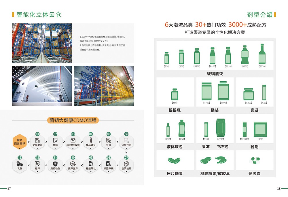 菌钥大健康立足发酵中药、鲜活胶原、液态纳米乳三大核心板块,拥有发酵中药、口服美容、体重管理、运动营养、特殊膳食等10大功能实验室。可生产口服液、粉剂、凝胶糖果、滋养膏滋、压片糖果、营养果冻等16大剂型;拥有4+种各项管理认证、3000+成熟配方产品、30+已授权专利证书、50O+注册商标以及500+合作客户。