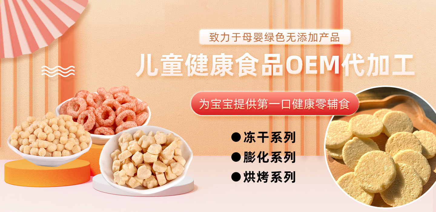 儿童健康食品OEM包括:冻干系列、膨化系列、烘烤系列、营养补充剂。
