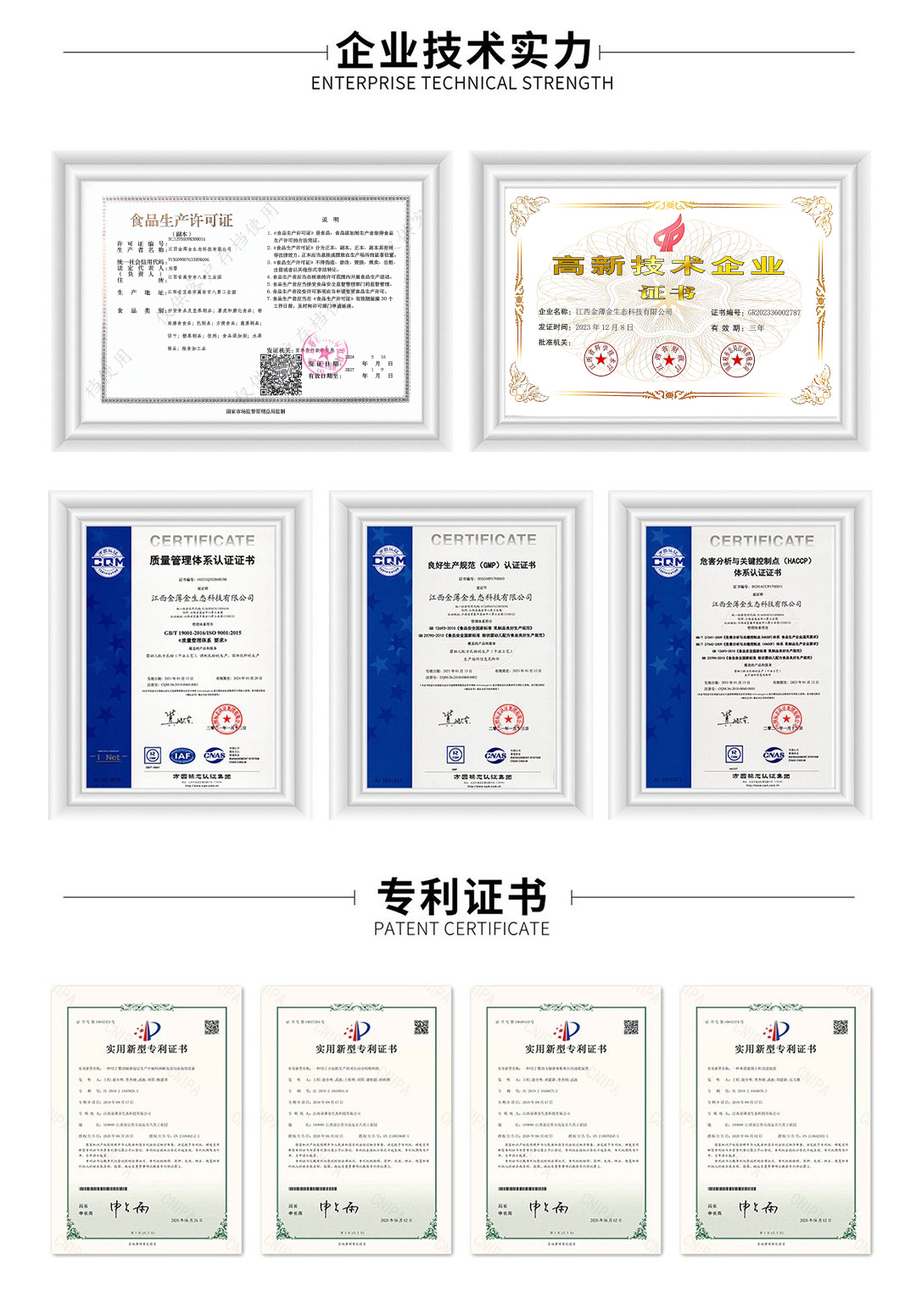 金薄金秉承“好原料造好产品”发展理念,以“全员参与,生产顾客满意产品;持续改进,提高产品质量”为食品安全管理方针,先后通过了ISO9001质量管理体系、食品HACCP体系、乳制品GMP体系、安全生产标准化等管理体系认证认可,荣获“标准化良好行为AAA企业”、“江西省专精特新企业”、“国家高新技术企业”、“脱贫攻坚爱心帮扶企业”等荣誉,并取得有机产品认证、美国FDA乳制品认证等多个产品认证证书。