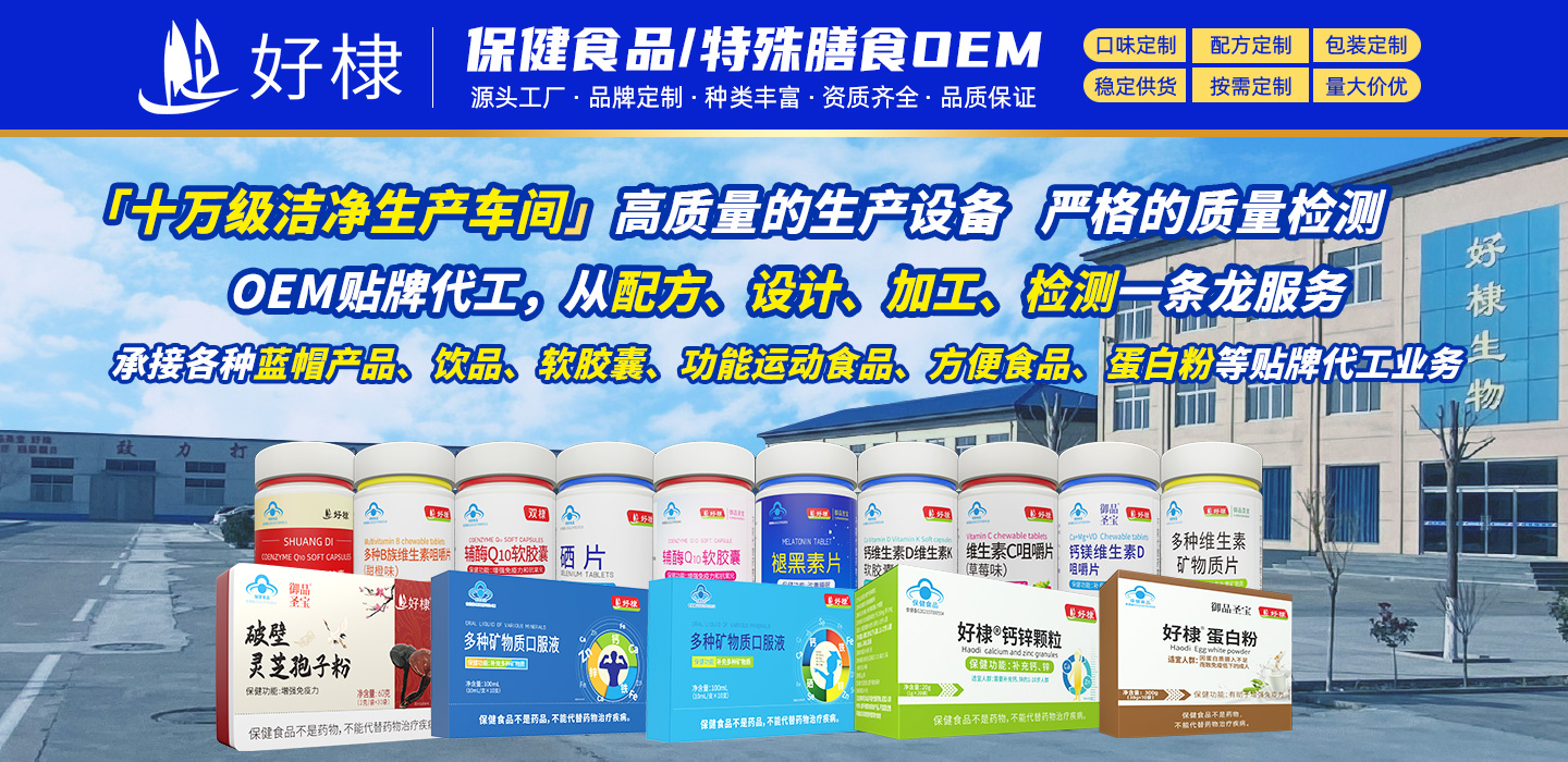 好棣(山东)生物科技有限公司是一家集食品研发、生产、销售、出口于一体的综合性企业。公司拥有国内全自动化透明 10 万级净化生产车间和高质量的生产设备,前沿的技术,理想的研发团队。同时公司以成熟的产品配方,专业的生产设备,严格的质量检测,专业的团队,合理的加工费用,承接各种蓝帽产品、饮品、软胶囊、功能运动食品、方便食品、蛋白粉等OEM贴牌代工业务,从配方、设计、加工、检测一条龙服务。