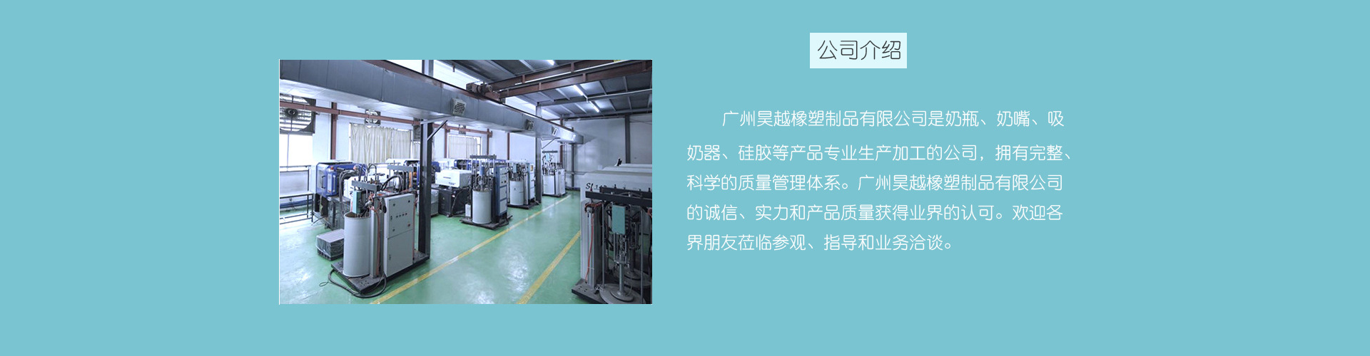 广州昊越婴童用品有限公司是专业生产婴幼儿奶瓶 、儿童餐具、水杯水壶等婴童喂哺用品生产企业;公司集专业设计、制造及销售为一体的技术、知识密集型企业;拥有的一流工业园区,欧盟品质标准的生产车间,欧洲进口机器加工设备和专业人才,具备强大生产能力。 公司在国内率先实现“全线产品零双酚 A”!加工生产优质的 PPSU 材质、PA材质、液态硅胶等食品级材质奶瓶,并具有高品质一流的硅胶产品生产能力。所有产品原料及工艺均符合婴童产业标准 ! 所有产品符合国家相关标准、欧洲CE 标准和美国 FDA 标准;公司获取哺育领域专利多达二十多项;并和多个国际知名大品牌密切合作。 公司拥有专业的研发生产团队,可以为广大婴童品牌提供从产品的开发设计、模具制作、试制样板、规模生产等服务,可根据客户的需求生产产品。同时为客户提供高质量的OEM 加工服务。