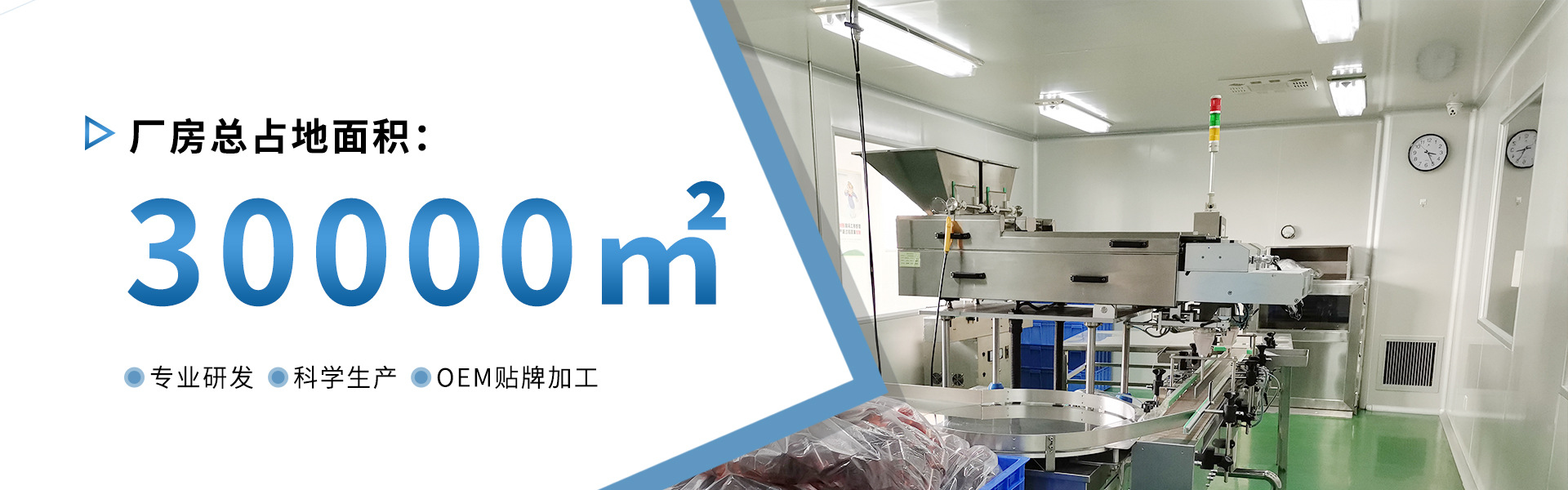 公司有10万级现代化保健食品生产车间,生产车间安照药品和保健食品GMP标准。工厂主要生产精致于功能性食品,粉剂(固体饮料及方便食品).片剂(压片糖果)年产1.1亿袋固体制剂、6.2千万固体瓶装、片剂8亿片(功能性片.益生菌片)。工厂自有10年以上经验自主研发团队及实验室供产品配方输出,10-50ml口服植物饮液.益生元浸膏.代餐饼干.减肥奶茶.代餐能量棒.代餐软糖.以及小分子寡肽喷剂类。并于广东药科大学联合研发配方输出。承接各种保健功能食品ODM贴牌加工 :功能性食品代加工、液体加工、片剂粉剂加工、颗粒加工、微商类方便功能性食品贴牌代工 、可定制生产。