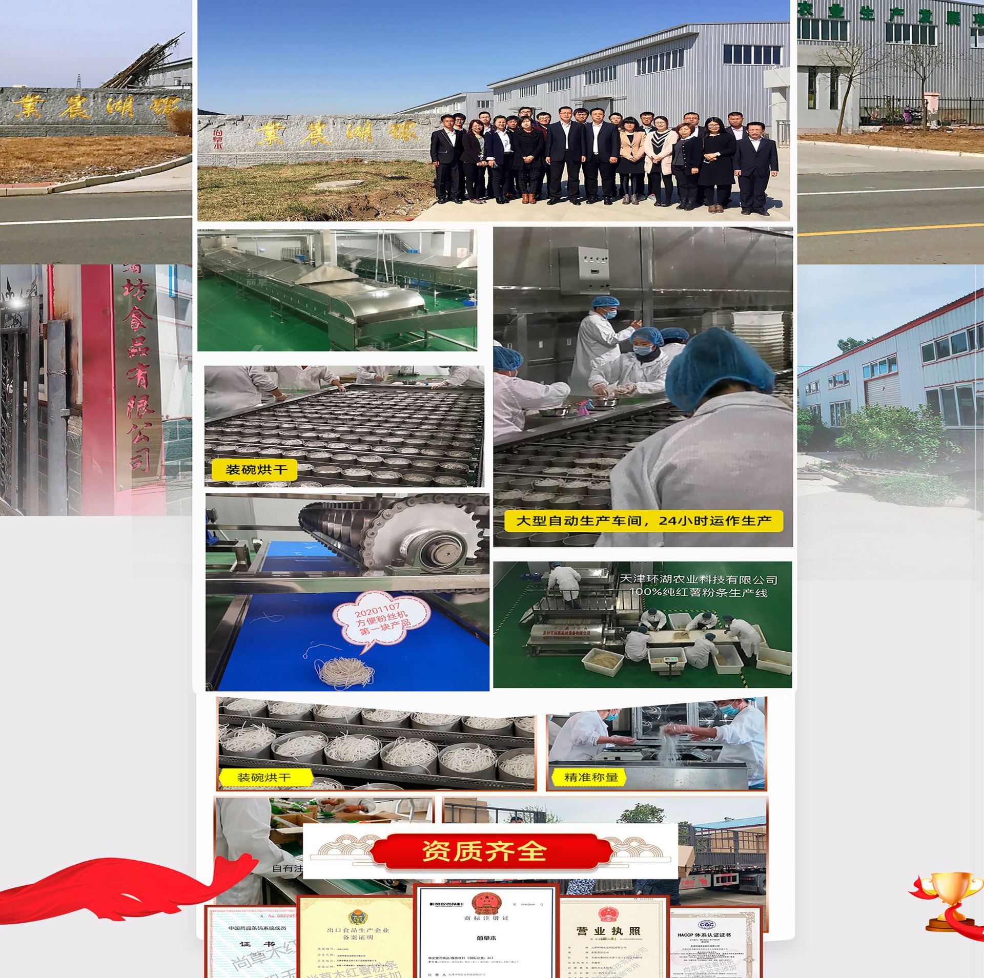 天津环湖农业科技有限公司,成立于2014年,前身为饮料生产企业成立于1992年,专业制造食品28年,公司目前专业淀粉制品生产厂家,主要有方便粉丝、水晶粉丝、火锅鲜粉(湿粉条)、红薯粉条,涂布工艺,另可提供酸辣粉、小火锅代加工、组装服务;公司通过了HACCP体系认证,出口食品备案!