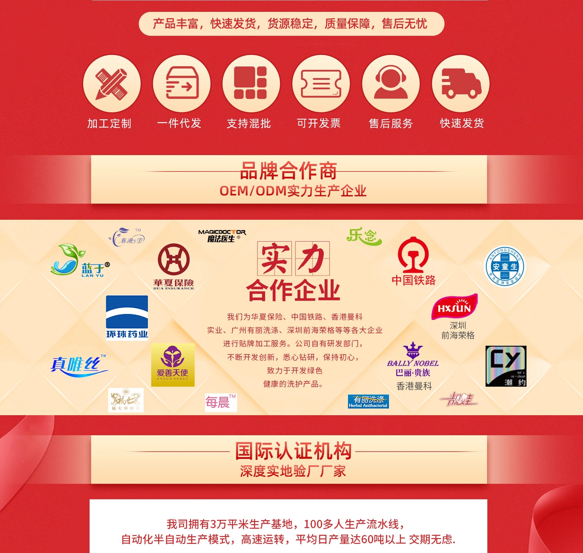 武汉超好生物科技股份有限公司是一家集自主研发、生产、销售于一体的家用日化用品公司。公司地处九省通衢的湖北省武汉市,位于江夏区经济开发区大桥新区黄家湖大道。公司自有工业园占地30000余平方米,拥有一流的研发中心、生产车间、仓储物流和完善的销售及售后服务体系。 公司自2010年成立以来,就十分注重科技创新。通过不断引进高级技术人才,全力研制开发高技术含量、高质量性能的家用日化产品。在激烈的市场竞争中,武汉超好身负中部日化行业崛起的重任。为弘扬“美舒洁”品牌,满足市场需求,保障消费者权益,做出了积极的贡献。 公司更注重管理和质量控制体系。对产品的原料、包装都经过严格的挑选,对产品每道工序均严格把关,严格按国家标准进行检测。产品合格率逐年提升,在省、市级机关质检部门监督抽检中不合格率为零,消费者满意度高达99.9%。如今,“美舒洁”的系列家用日化用品早已家喻户晓,具备了相当的知名度和美誉度