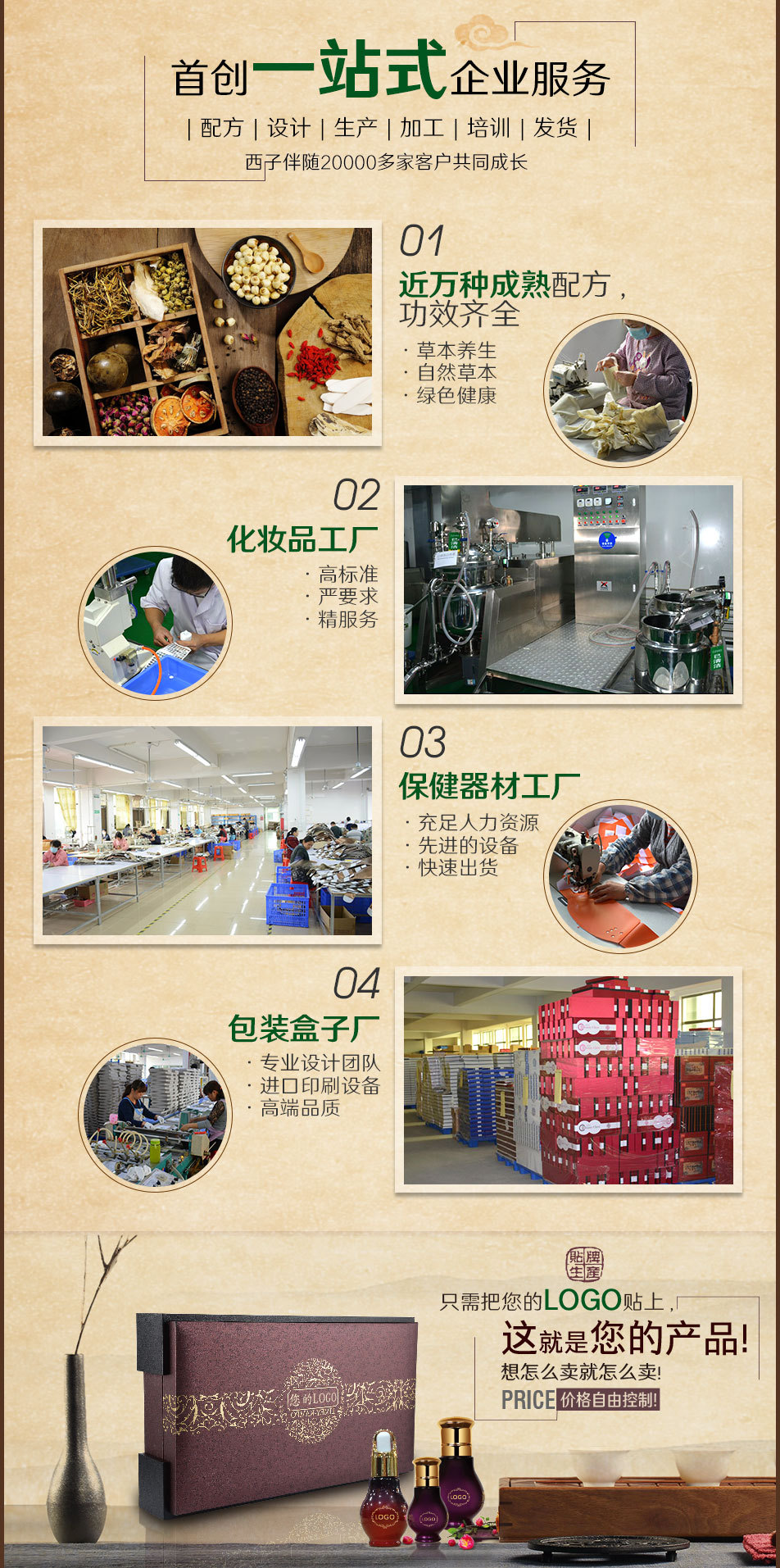 广州西子生物科技有限公司是中药热敷瘦瘦包、面膜原液、精油泥灸等专业生产加工的公司,拥有完整、科学的质量管理体系。广州西子生物科技有限公司的诚信、实力和产品质量获得业界的认可。欢迎各界朋友莅临参观、指导和业务洽谈。